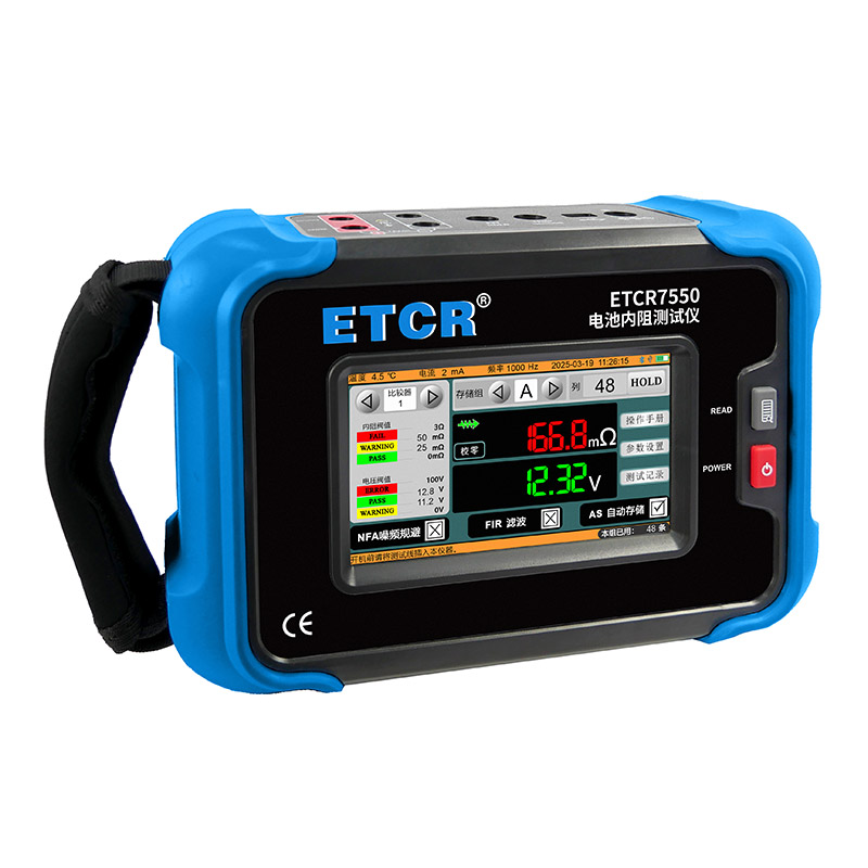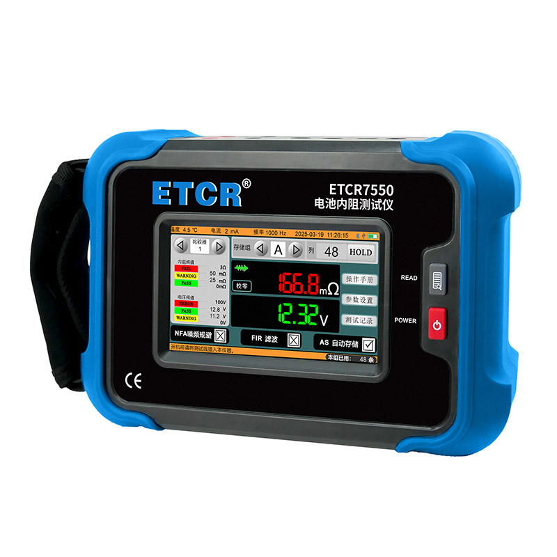 ETCR7550電池內(nèi)阻測試儀采用5寸觸摸彩屏,儀表高檔美觀,量程寬廣,分辨率高,操作便捷,攜帶方便,準(zhǔn)確、可靠、性能穩(wěn)定,抗干擾能力強(qiáng)。是電池生產(chǎn)、電池安裝、設(shè)備生產(chǎn)、設(shè)備維修等場景必不可少的儀器。