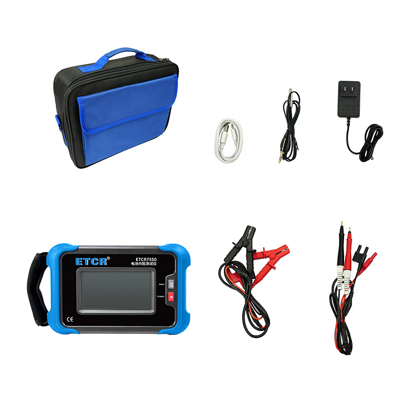 ETCR7550電池內(nèi)阻測試儀又稱充電電池測試儀、電池測試儀,本儀器是用于測量鉛蓄電池、鎳鎘、鎳氫電池、鋰電池的內(nèi)阻、電壓、溫度以判斷電池健康狀態(tài)的測量儀器。本儀表使用開爾文交流4線法測量電池內(nèi)阻,可不受測試線、端子與電池電極之間接觸電阻影響測量正確的測量值。