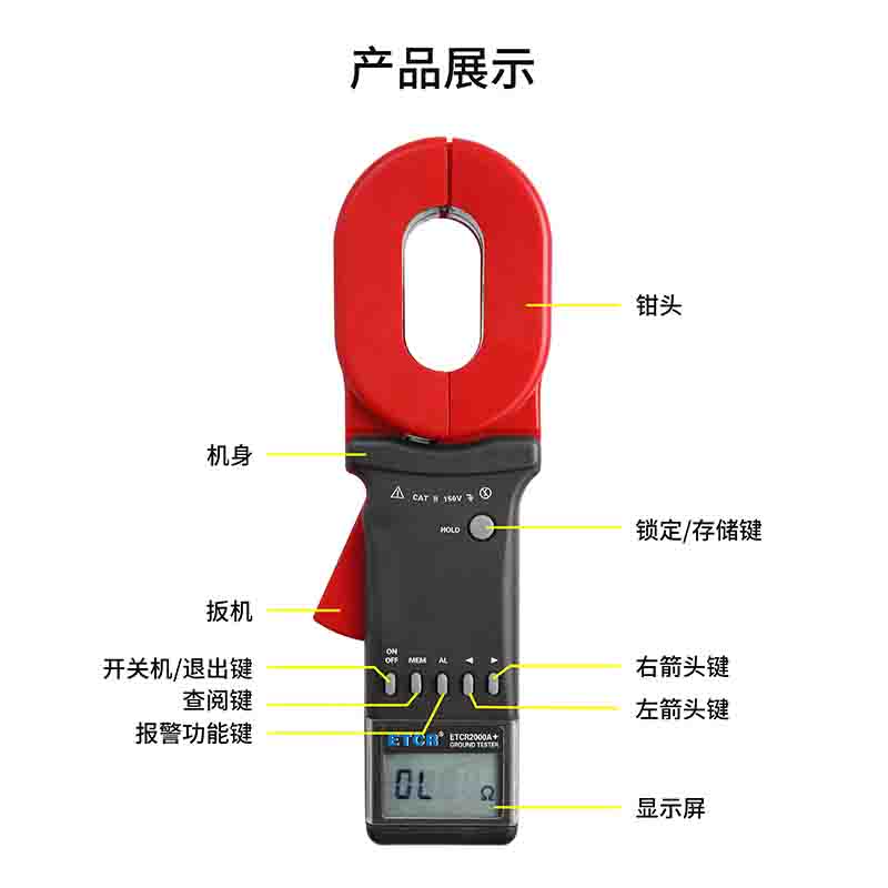 ETCR2000A+鉗形接地電阻儀又稱鉗形接地電阻表、單鉗接地電阻測試儀、環(huán)路電阻測試儀、防雷接地電阻表、防雷地阻儀,用于接地電阻、回路電阻測量、接地故障判斷。在測量有回路的接地系統(tǒng)時,不需斷開接地引下線,不需輔助接地極,安全快速、使用簡便。鉗形接地電阻儀廣泛應用于電力、電信、氣象、油田、建筑及工業(yè)電氣設備等的接地電阻測量、回路電阻測量。長鉗口特別適宜于扁鋼接地的場所。