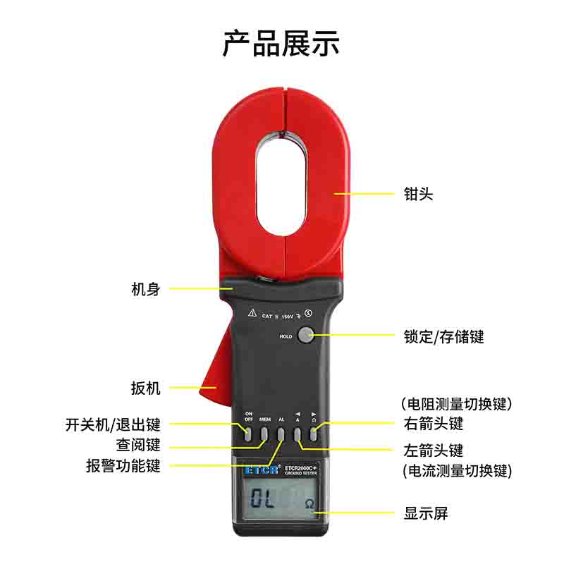 ETCR2000C+能測量出用傳統方法無法測量的接地故障,能應用于傳統方法無法測量的場合,因為鉗形接地電阻儀測量的是接地體電阻和接地引線電阻的綜合值。