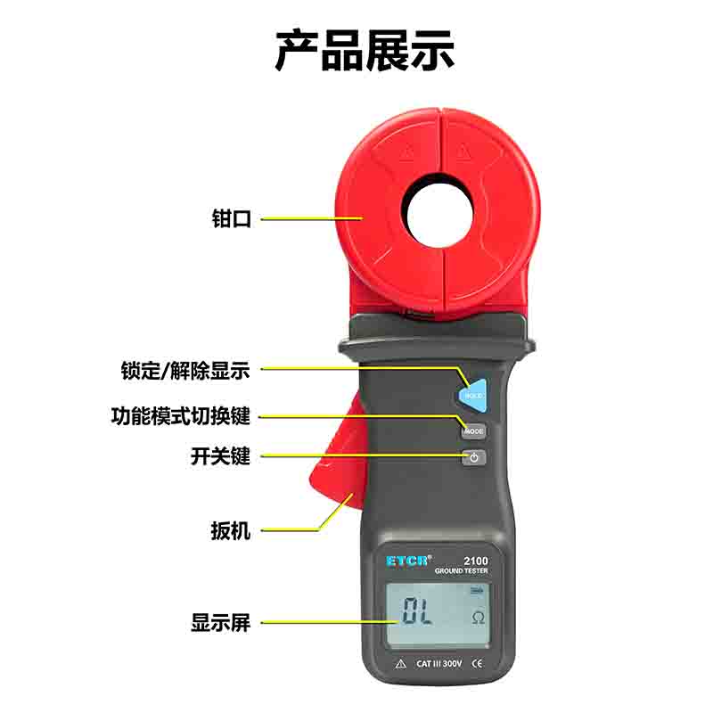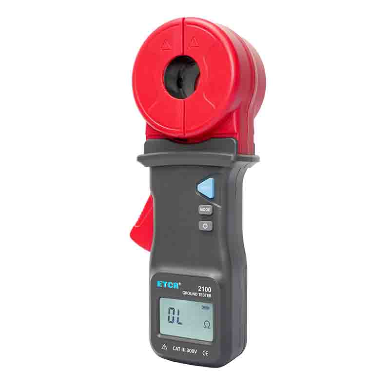 ETCR2100鉗形接地電阻儀能測量出用傳統方法無法測量的接地故障,能應用于傳統方法無法測量的場合,因為ETCR系列鉗形接地電阻儀測量的是接地體電阻和接地引線電阻的綜合值。 另外,C型鉗形接地電阻儀還能測量接地系統的泄漏電流和中性線電流。