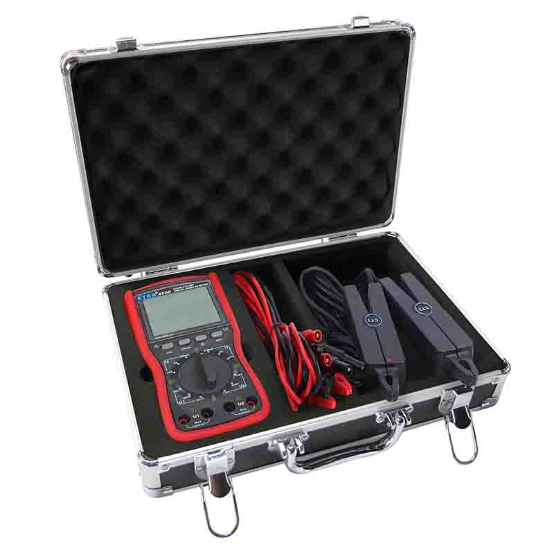 ETCR4000雙鉗數(shù)字相位伏安表又稱單相相位伏安表、數(shù)字相位伏安表、伏安相位儀、相位測量儀,用于相位、交流電流、交流電壓、交流漏電流、相序測量。可以在被測回路不開路的情況下直接測量交流電壓和交流電流,測量兩電壓間、兩電流間和電壓電流間的相位,此外,還可間接測得電路的功率因數(shù)和功率,可以判別三相相序,變壓器接線組別、感性、容性電路,測試二次回路和母差保護(hù)系統(tǒng),讀出差動保護(hù)各組CT之間的相位關(guān)系,檢查電度表的接線正確與否,檢修線路設(shè)備等。適用于電力、石油化工、冶金、鐵路、氣象、工礦企業(yè)、科研院校、計量部門等。