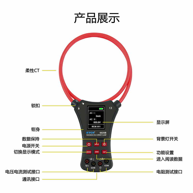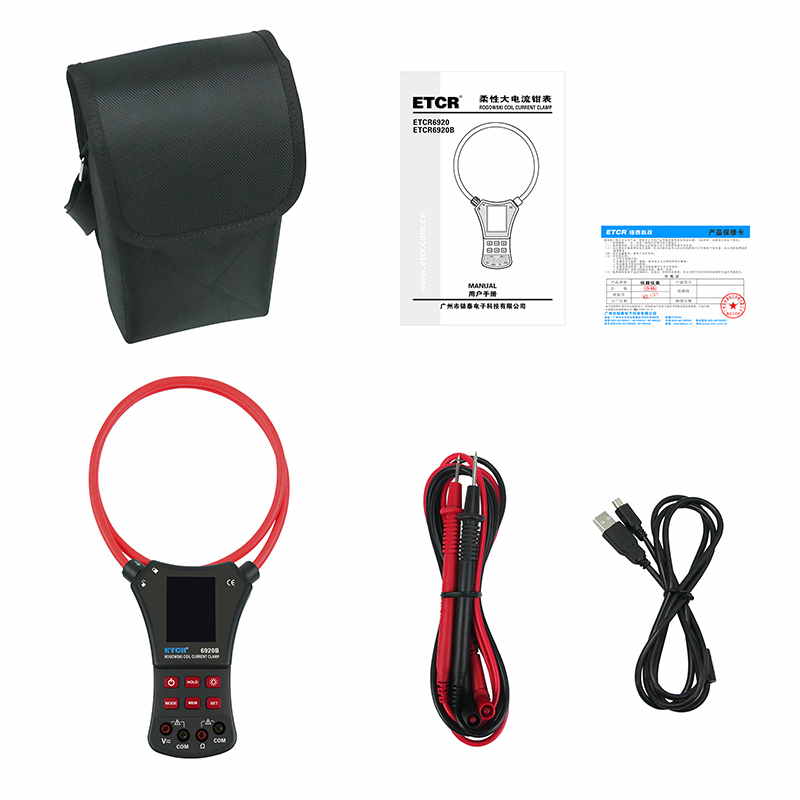 ETCR6920B柔性電流鉗表又名柔性線圈鉗表、超大電流鉗表、羅氏線圈電流鉗表、洛氏線圈電流鉗表,用于交流電流測試、電壓測試、電阻測試、通斷測試。柔性線圈無任何裸露金屬導體,體積小、重量輕、柔軟靈活,特別適合大尺寸導體、狹窄環境和排線密集的場所,可用于信號嚴重畸變的工業環境電流測試。廣泛適用于電力、通信、氣象、鐵路、油田、建筑、計量、科研教學單位、工礦企業等領域。
