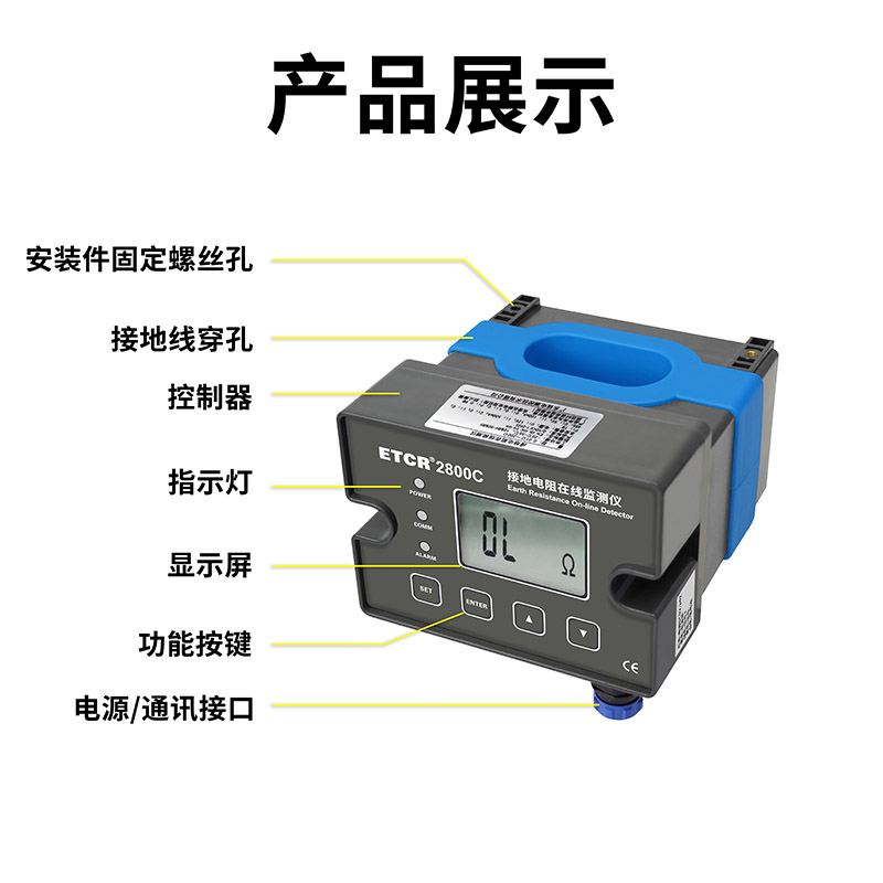 | ETCR2800KC接地電阻在線檢測儀(2025款) | 56mm×27mm | 0.010Ω~200Ω | 0.0mA~20A | 整體式+開合式傳感器+顯示屏 |
