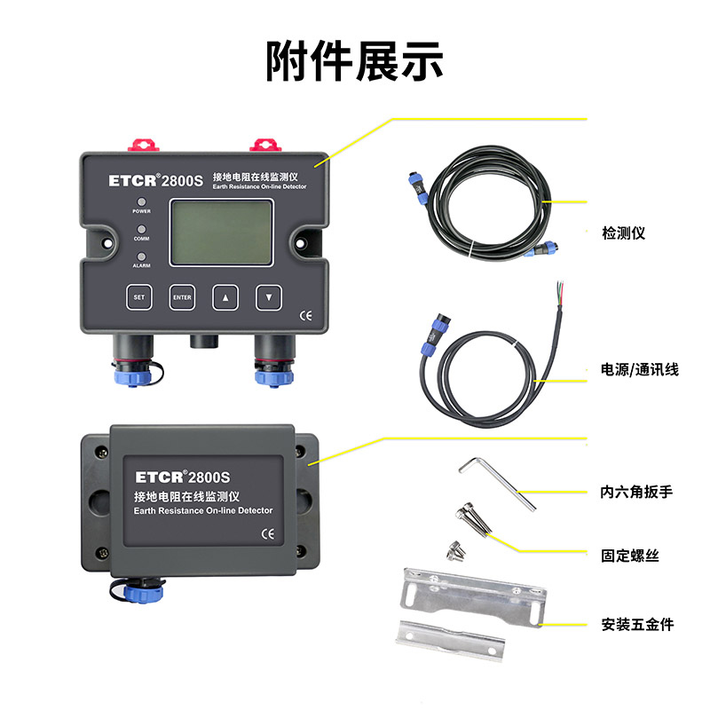ETCR2800S/2800KS接地電阻在線檢測(cè)儀用于在線監(jiān)測(cè)接地電阻、接地引下線的連接狀況、回路接地電阻、金屬回路聯(lián)結(jié)電阻,還可以在線監(jiān)測(cè)接地電流。又稱(chēng)接地電阻在線測(cè)試儀、回路電阻在線監(jiān)測(cè)儀。檢測(cè)儀采用非接觸測(cè)量技術(shù)、地線穿心通過(guò)傳感器、絕不影響防雷接地效果和設(shè)施的正常運(yùn)行;檢測(cè)儀有多種結(jié)構(gòu)適應(yīng)不同場(chǎng)所使用;檢測(cè)儀防護(hù)等級(jí)IP65,可在戶外安裝使用。檢測(cè)儀廣泛應(yīng)用于輸電線路桿塔接地;氣象防雷接地;石油化工接地;通信接地;變配電站接地;鐵路設(shè)施接地;建筑倉(cāng)庫(kù)接地;金屬回路阻值;電氣設(shè)備接地等。