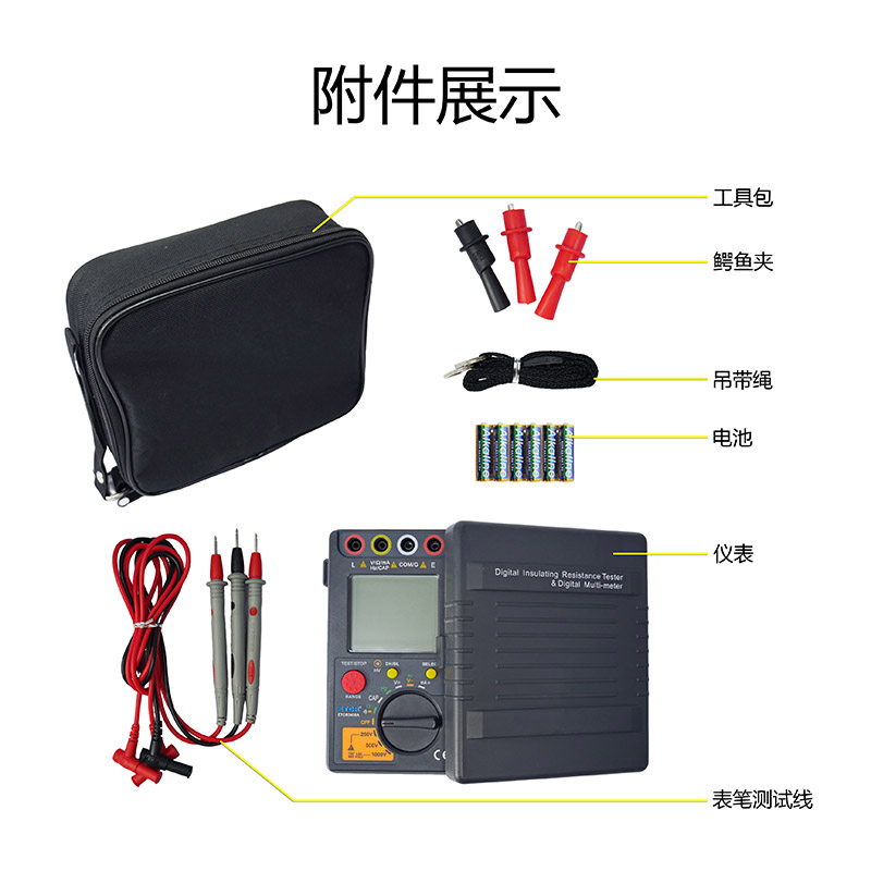 1. 絕緣電阻表與萬用表的完美結(jié)合,絕緣電阻測試與數(shù)字萬用表相互分開,測試時互不影響。