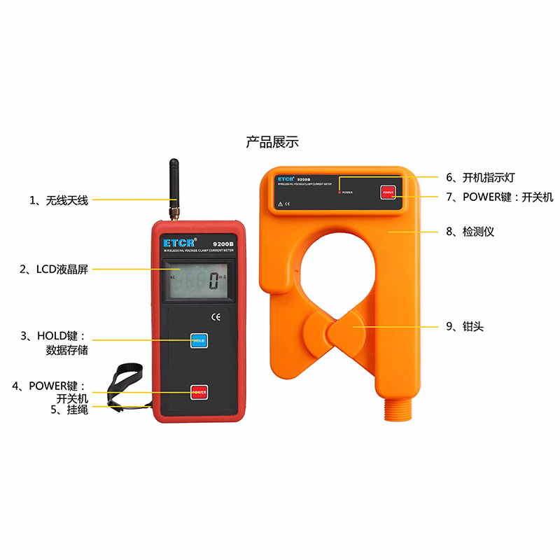 ETCR9200B大口徑無線高低壓鉗形電流表又稱架空線路負載測試儀,高壓負載測試儀、高空電流測試儀、高壓電流遙測儀,用于測量架空線路高低壓電流。儀表由專用鉗形電流表配高壓絕緣桿組成。若不使用絕緣桿,還可以當作高精度低壓鉗形電流表使用。廣泛應用于變電站﹑發電廠﹑工礦企業以及檢測站﹑電工維修部門進行電流檢測和野外電工作業等。