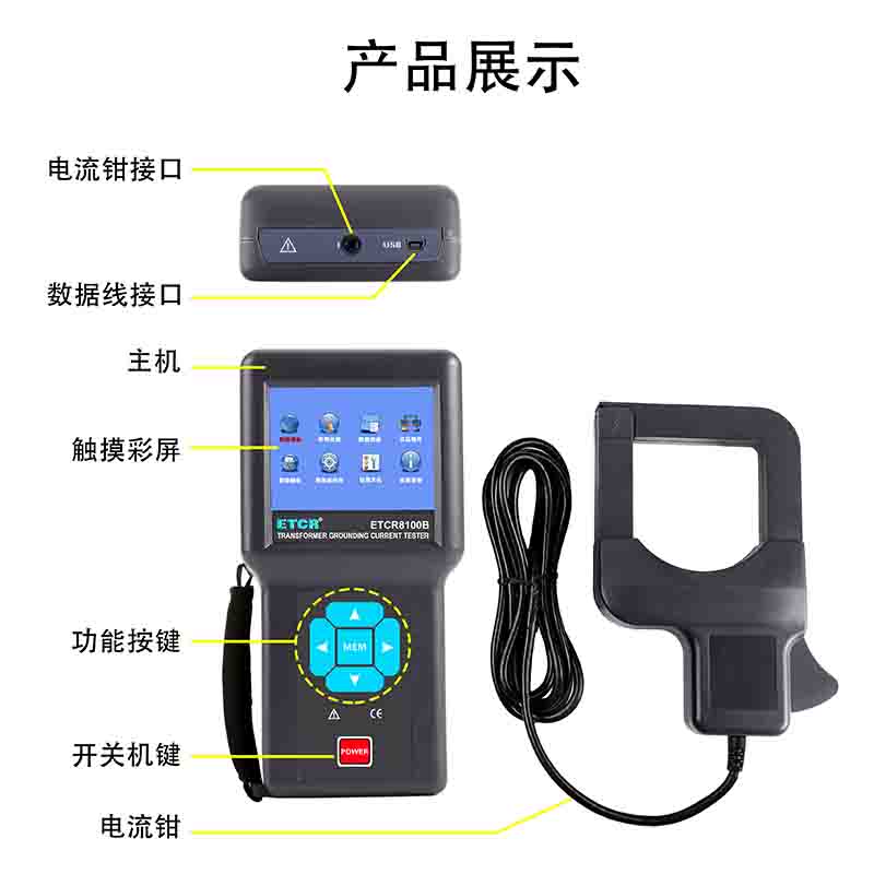 | ETCR8100B變壓器鐵芯接地電流測(cè)試儀 | AC 0.00mA~100A | 10Hz~1000Hz | 80mm×80mm | 可設(shè)置報(bào)警閾值 | 100組 |